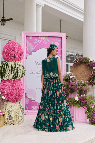 Safa Hand Embroidered Backless Choli with Trail Sharara and Dupatta