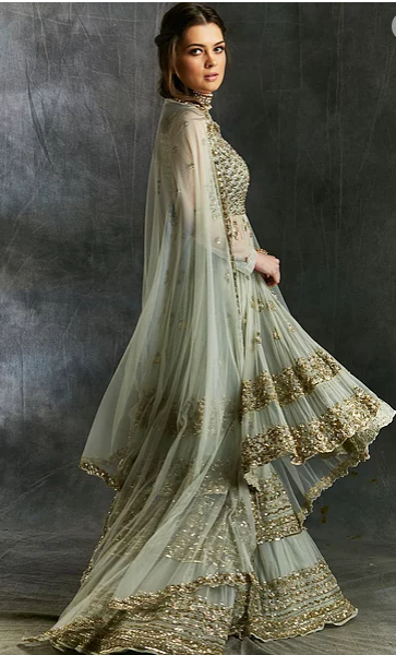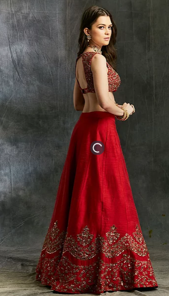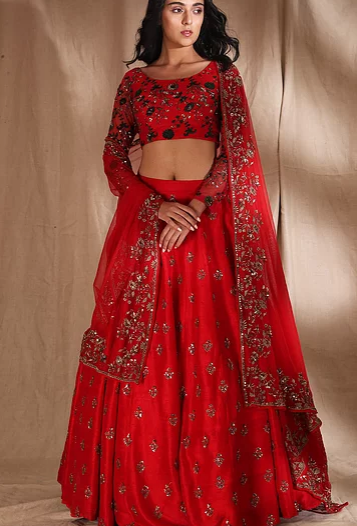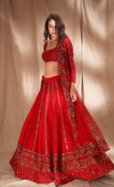 Astha Narang Red Floral Work Off Shoulder Anarkali Gown