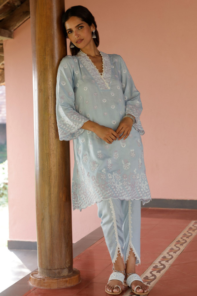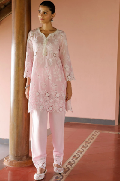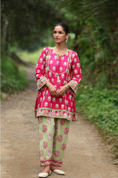 Mulmul Ombre Cotton Zehen Yellow Kurta With Mulmul Ombre Cotton Zehen Yellow Pant