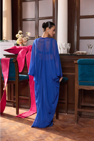 Powder Blue Dash Ikat Banarasi Georgette Kaftaan With Organza Detailed Sleeves
