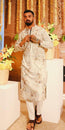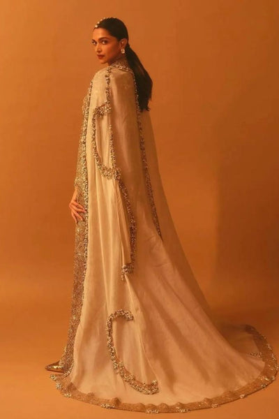 Deepika opted for traditional Haute Couture, wearing a custom Anamika Khanna heavy ivory embellished embroidered trouser suit featuring a matching cape. Work-Pant suit set featured subtle floral embroidery in silk...