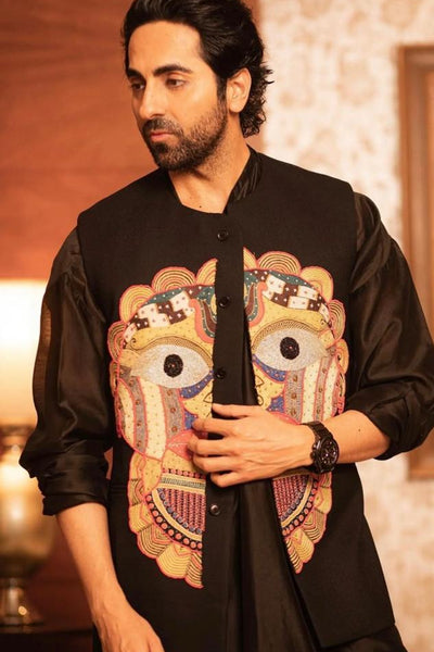 $3,757.00 Akshay Kumar in Black Sherwani With Embroiderd Threadwork