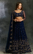 Astha Narang Midnight Blue Net Sequin Shimmer Lehenga