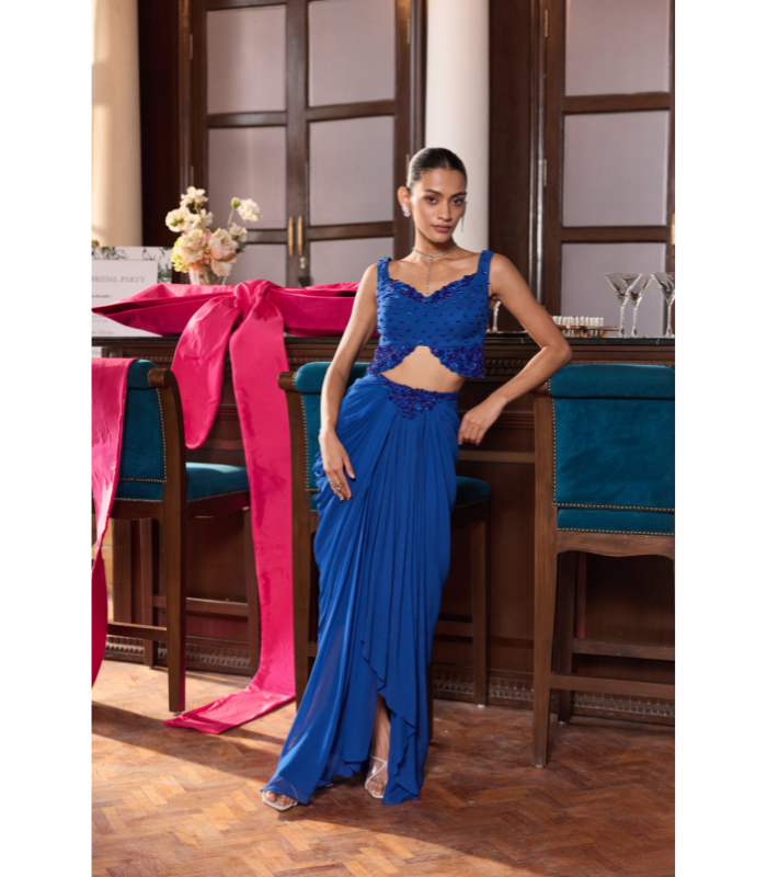 Embellished Choli Paired With Embellished Draped Skirt.