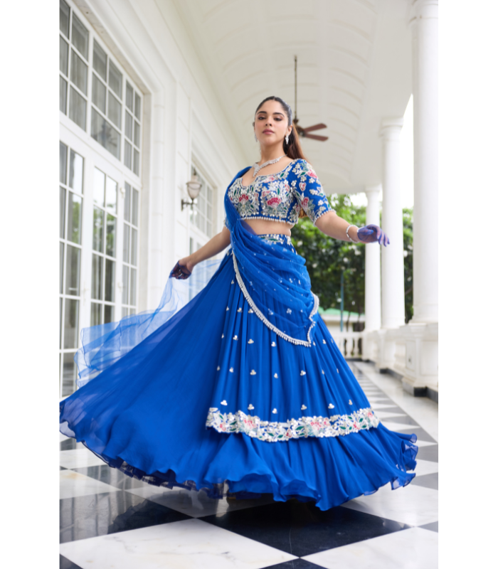 Embellished Choli Paired With And Embellished Lehenga With Cancan And Draped Dupatta