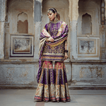 DISCLAIMER- DELIVERY TIMELINE -4-6 weeks WORK-Zari & Mirrorwork FABRIC COMPOSITION-Velvet NO. OF COMPONENTS-3 Measuring Guide Our fit expert will get on a call if a client wants a made to...