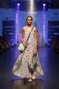 Payal Singhal Stone crepe embroidered kaftaan top worn with periwinkle blue embroidered georgette saree and petticoat