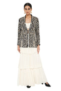 Off White Georgette Embroidered Kurta With Back Cut Out And Abla Silk Sharara And Net Mukaish Dupatta