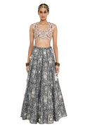Off White Georgette Embroidered Choli Lehenga With Mukaish Organza Dupatta