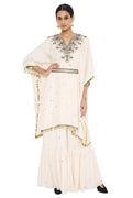 Off White Georgette Embroidered Kurta With Back Cut Out And Abla Silk Sharara And Net Mukaish Dupatta