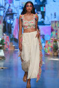 Rose Pink Georgette Embroidered Scallop Jacket With Front Embroidered Bustier And Palazzo Pants