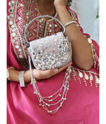 Cute Bag alert! A heart shaped clutch, intricately hand embellished, this one's sure to turn heads. Comes with a detachable sling chain. CARE INSTRUCTIONS - Keep the bag with the...