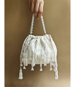 Add that perfect pop of sparkle to your festive wardrobe with the Mirror Potli Bag!It’s not just a bag, it’s the ultimate festive accessory, combining shimmer, tassels, and a whole...