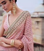 Elevated in signature gota patti, zardozi embroidery, and sequins, this drape weaves heritage with a hint of modern charm. Comes with a stitched choli, embellished to perfection.