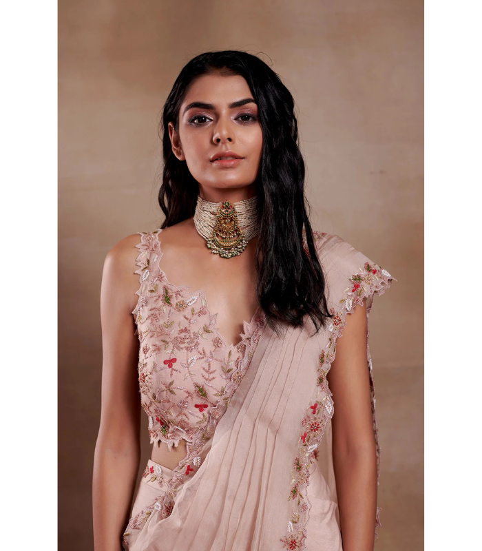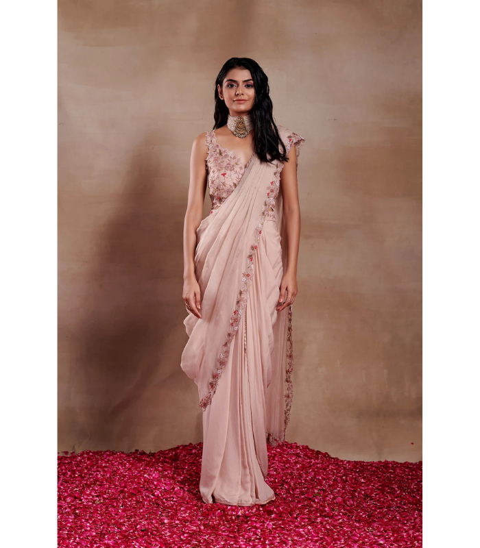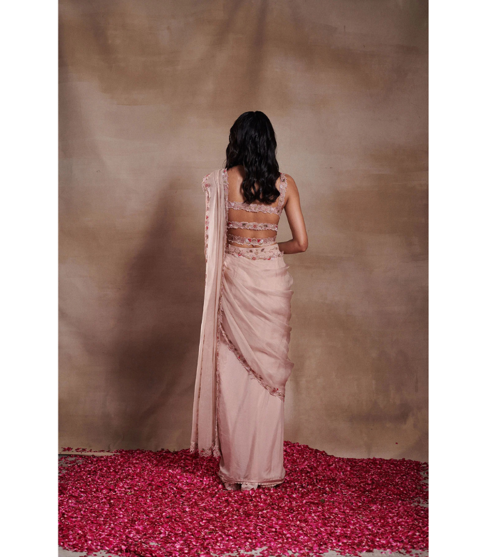 ROSE ORGANZA CUTWORK DRAPED SAREE WITH BEAUTIFUL HAND EMBROIDERY