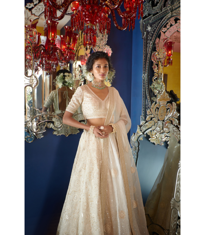 FLOWER EMBROIDERED ORGANZA LEHENGA SET