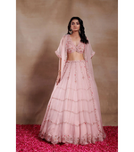FLOWERS BEADS ORGANZA LEHENGA WITH JACKET AND BLOUSE Color : Dark Pink Fabric : ORGANZA Embroidery Details : Hand Embroidery no of components - 3 Delivery Time : 5-6 weeks Wash Care : Dry...