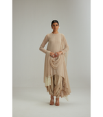 Light Beige Pearl Scattered Dhoti Kurta Set With Stole