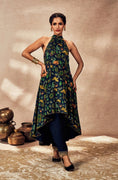Blue Tropical Rhapsody Halter Neck Tunic Set