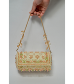 Elegant studded bag for any event suitable . Intricate Beadwork: A beautiful cascade of white pearls and shimmering silver-toned beads.Luxurious Texture: Delicate sequin patterns woven into a high-quality fabric base,...