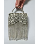 Elegant studded bag for any event suitable . Intricate Beadwork: A beautiful cascade of white pearls and shimmering silver-toned beads.Luxurious Texture: Delicate sequin patterns woven into a high-quality fabric base,...