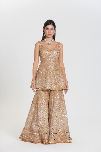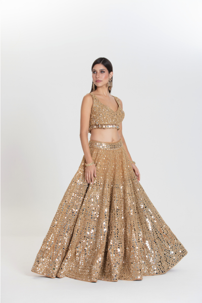 Fabric Description:- SKIRT-SPECIAL NET ,DUPATTA-SPECIAL NET , BLOUSE- SPECIAL NET Embroidery Details:- MIRROR,ZARI,DORI THREAD , SEQUINS Color Options :- Colors can be customizedColor - GoldAvailability :- Custom Make OrdersNo. Of Components :- 3Washing care :- Dry...