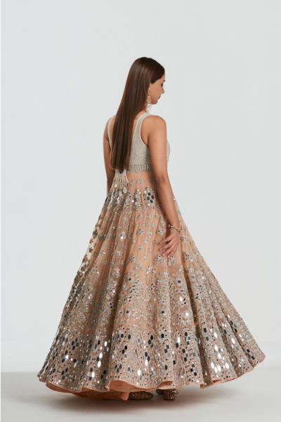 Fabric Description -Anarkali - Special Net , Dupatta - Special Net Embroidery - Mirror work , zari Colour:- Blush Peach No. Of Components - 3 Instructions - Dry Clean Only ...