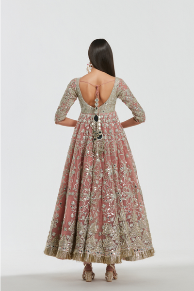 Fabric Description -Anarkali - Special Net , Dupatta - Special Net Embroidery - Mirror , zari , gota Colour:- Powder Pink No. Of Components - 2 Instructions - Dry Clean...
