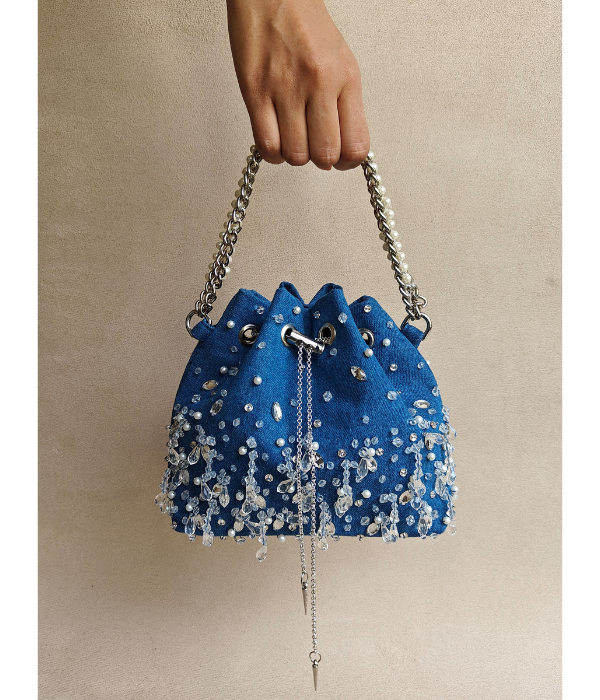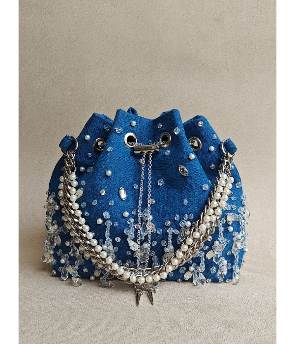 Say Hi to your New Summer Essential! Embellished using a mix of pearls and clear beads, this bag is perfect to style with your Western Wear and carry all your essentials. Go hand free as this one comes with a detachable crossbody chain as well!
