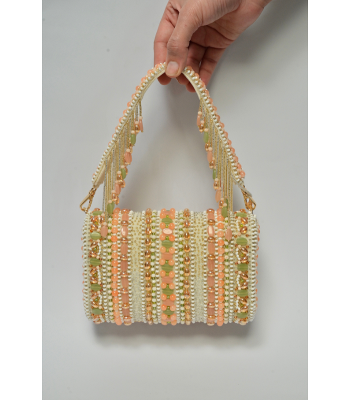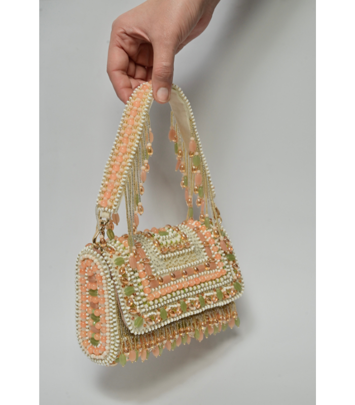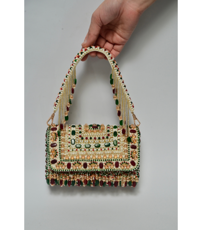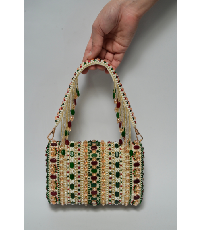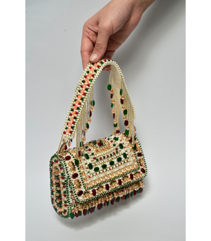 A fully embellished hand bag .