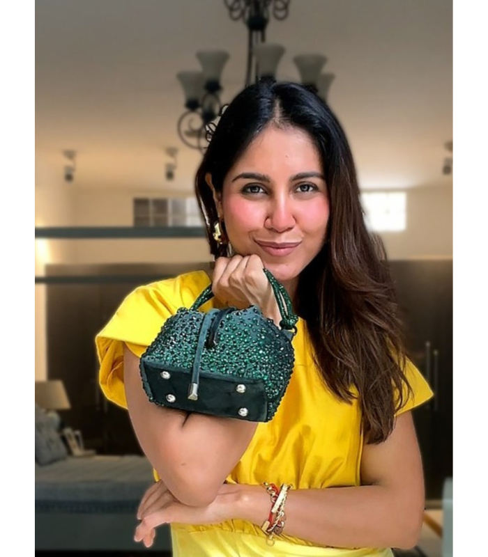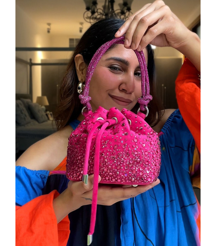 Bursting with pop colors and adorned with dazzling Swarovski crystals, this bag is the epitome of super bling and super cute. Perfect for adding a touch of sparkle to any outfit, this mini marvel is sure to turn heads and steal hearts.