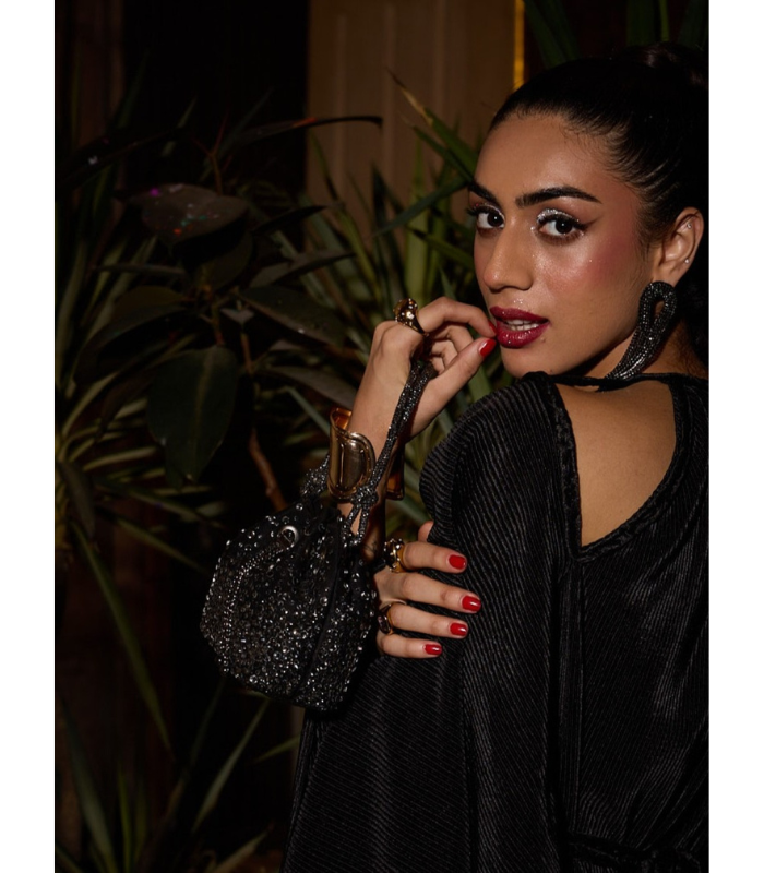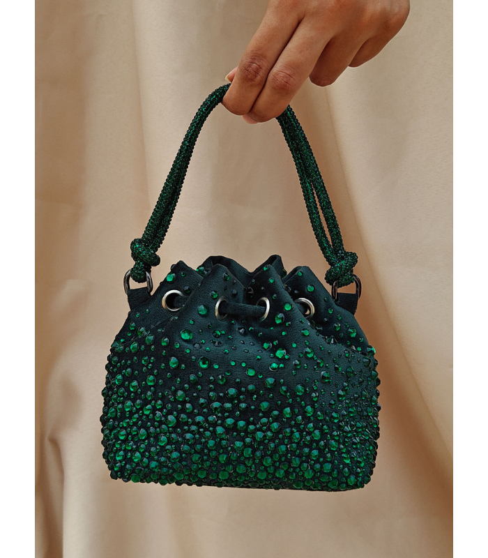 Keep the bag with the original stuffing and in the dust bag provided when not in use. Embroidery and embellishment is done by hand and should be handled with care. Exposure to liquids may cause damage.