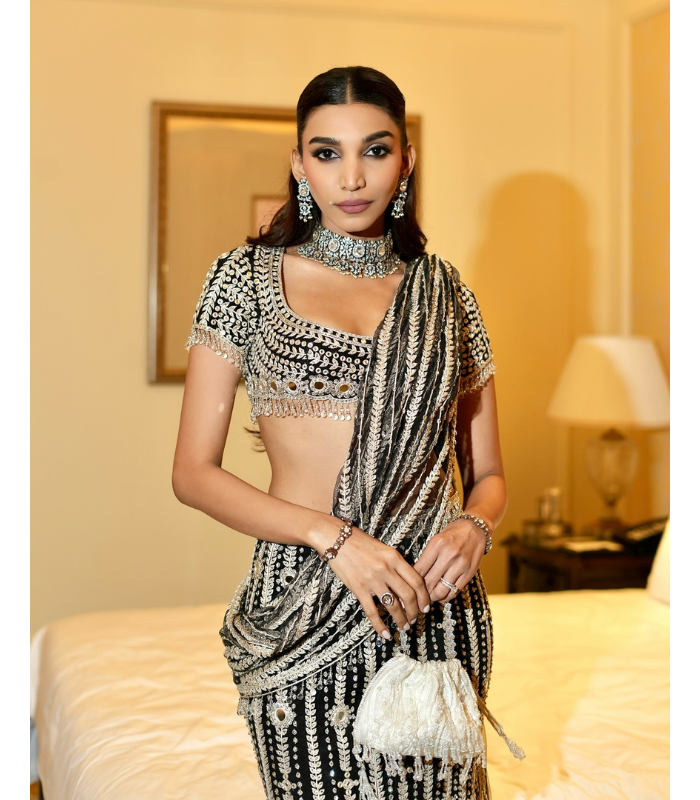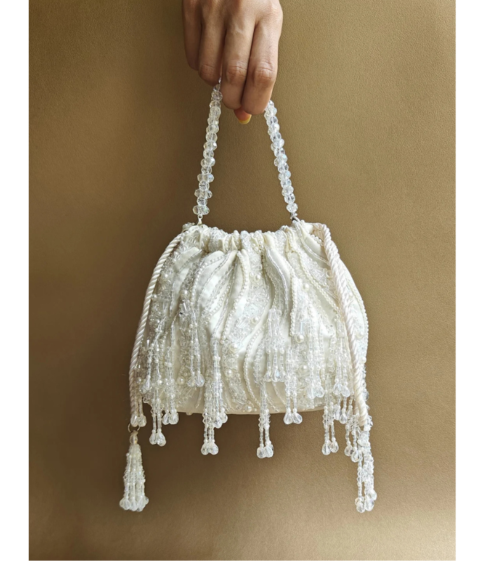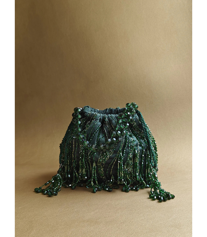 Elegance meets utility in our stunning glass bead embellished Pouch bag. This versatile accessory complements any festive look and offers ample space for your essentials, yes even your phone! Be the epitome of style and convenience this season !