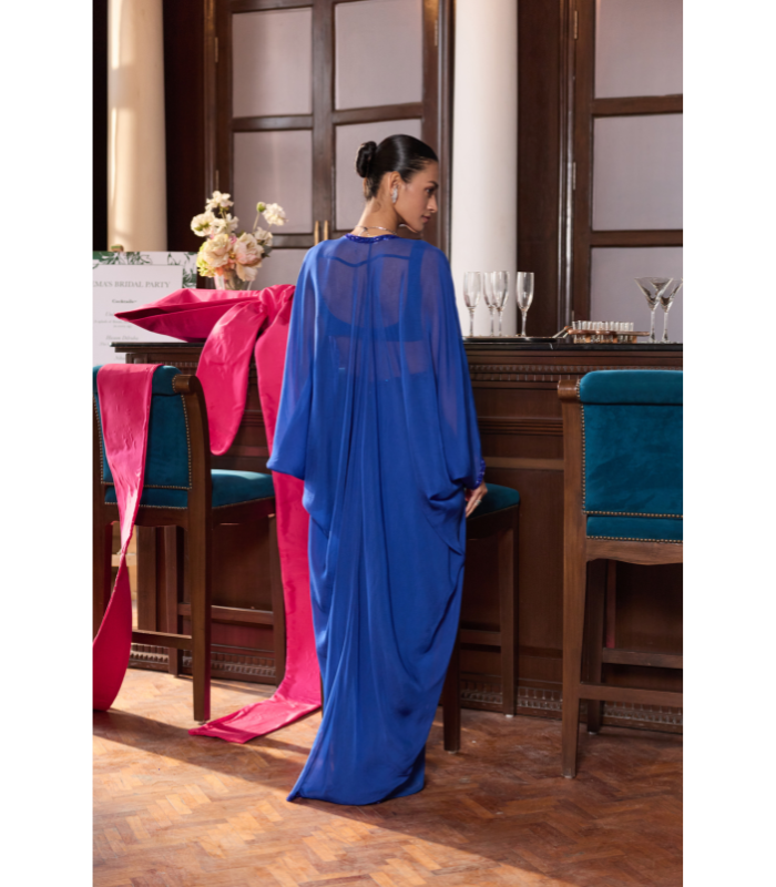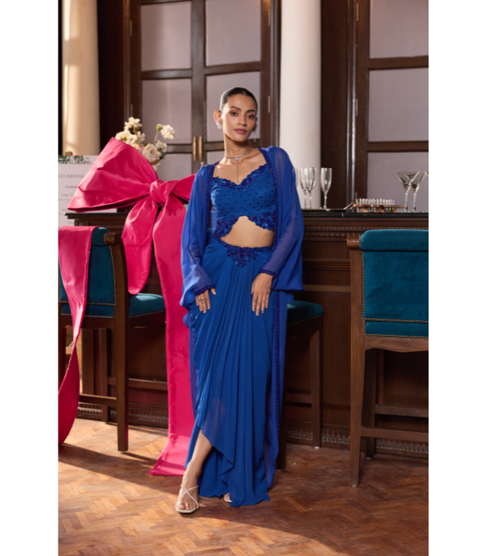 Embellished Choli Paired With Embellished Cape And Draped Skirt.
